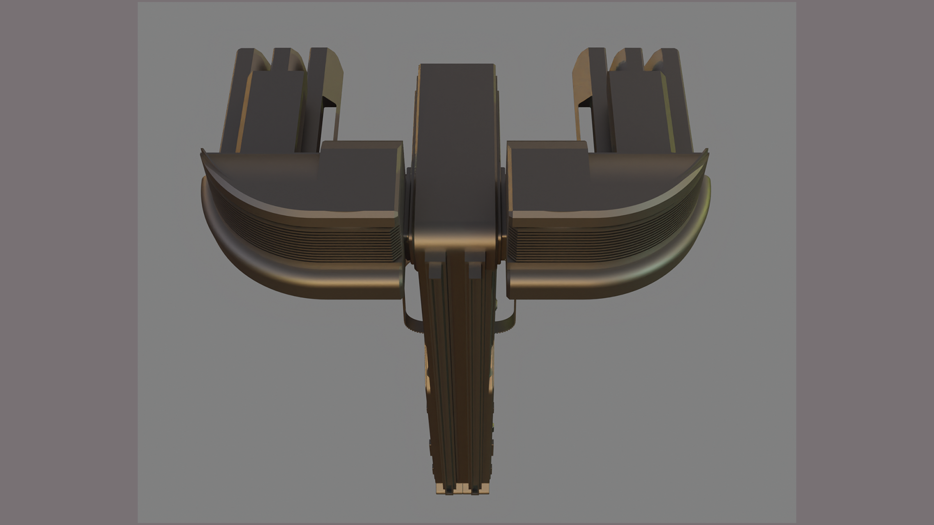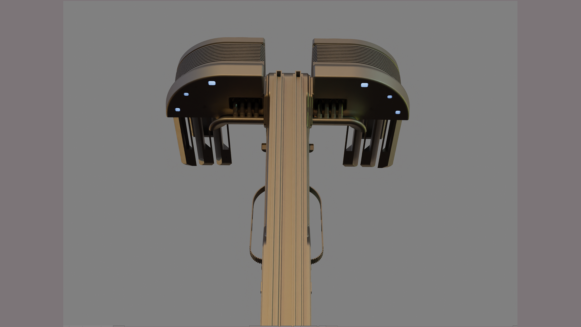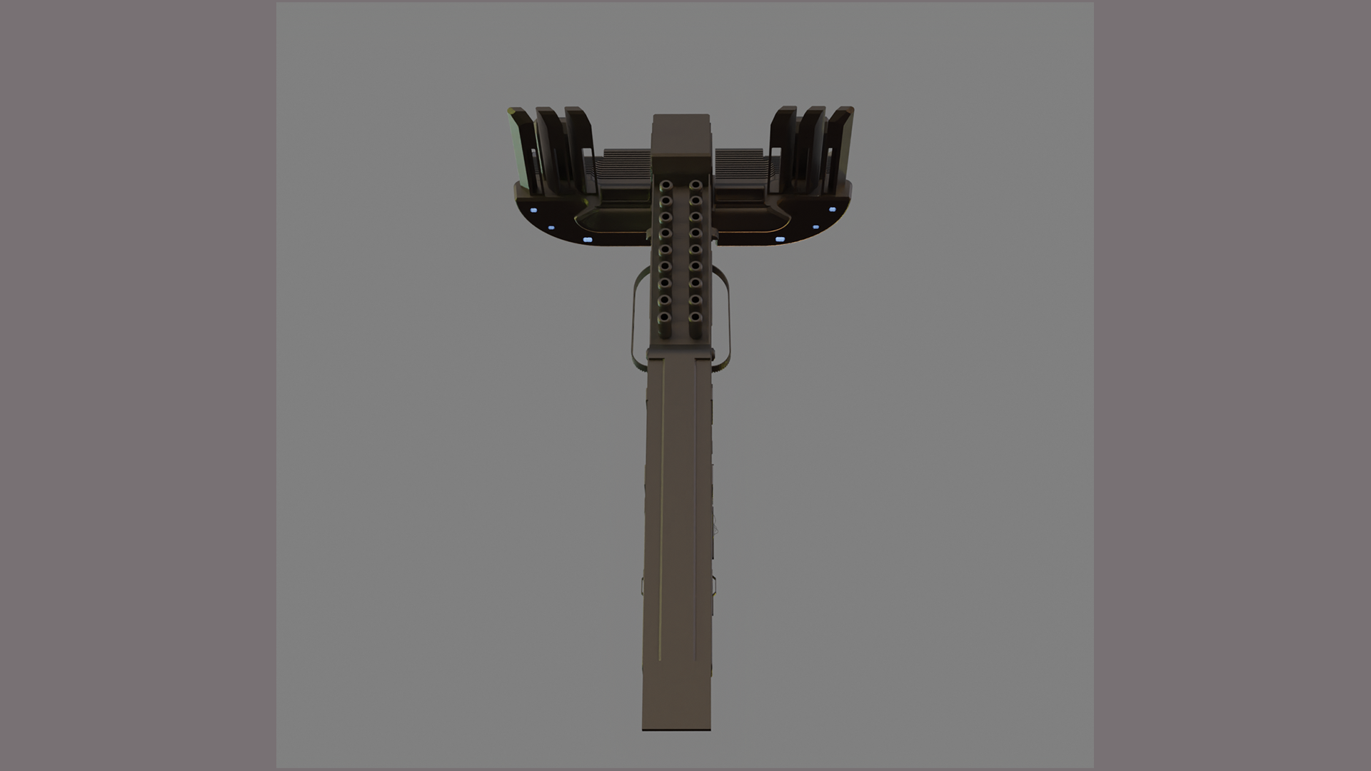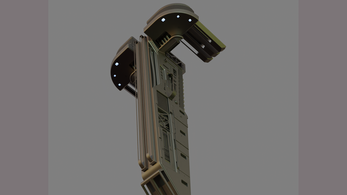 This Abstract Alien Spaceship features a sleek, futuristic alien structure designed in CAD, this model features a tall central column with intricate paneling, vents, and mechanical detailing that emphasize a functional, industrial aesthetic. The symmetrical upper extensions resemble docking platforms or sensor arrays, enhanced by subtle integrated lighting that suggests an active, powered system.
