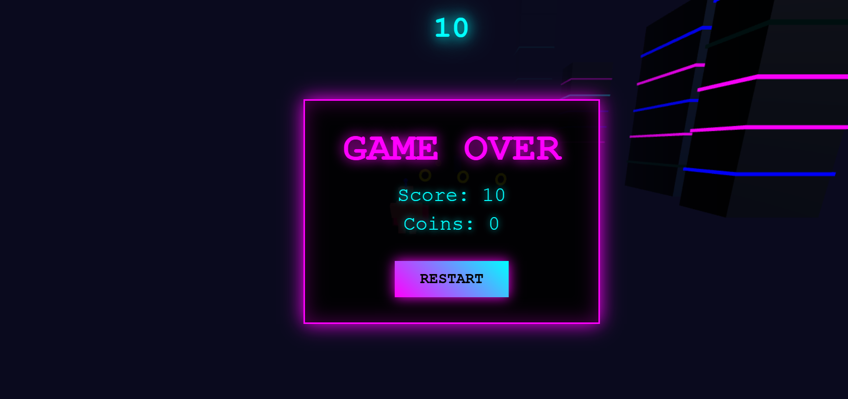 Control a sleek, cute robot sprinting down neon-drenched streets, dodging obstacles, leaping over gaps, and sliding under barriers. Collect shimmering glowing coins to rack up your high score while the city blurs by in a haze of pink, blue, and purple lights.