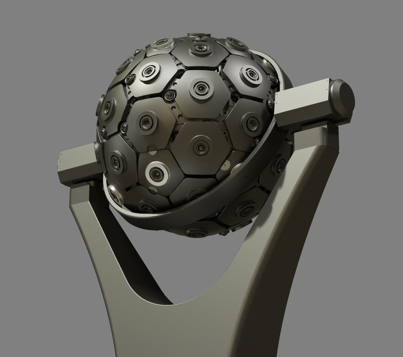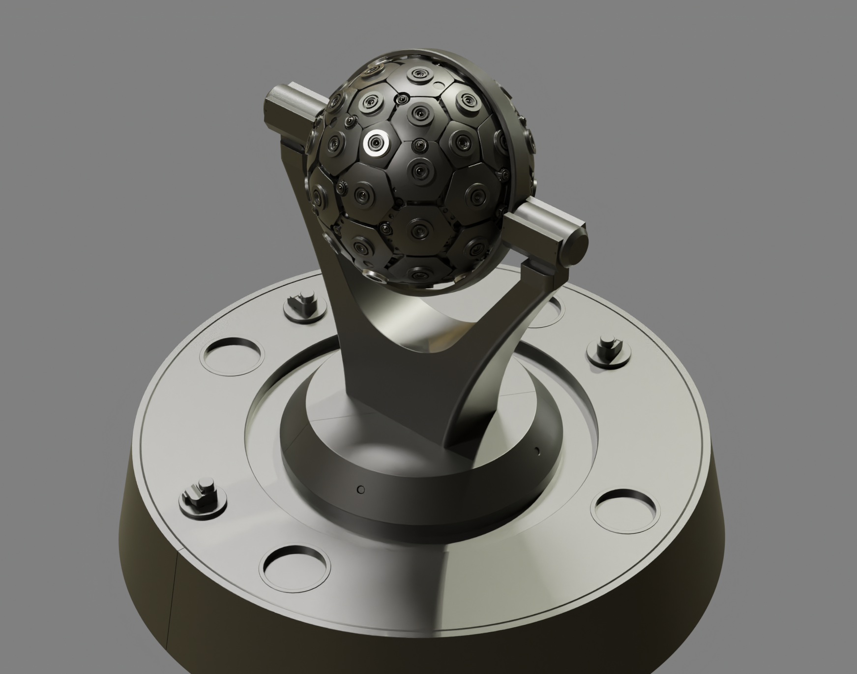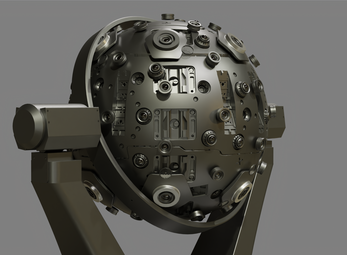 This concept model serves as a versatile hero asset for sci-fi interiors, acting as the 'brain' of a navigation deck or a high-tech laboratory centerpiece. With its heavy-duty gimbal mounts and intricate industrial detailing, the Orb offers a grounded, high-fidelity look at future-tech surveillance and deep-space exploration hardware