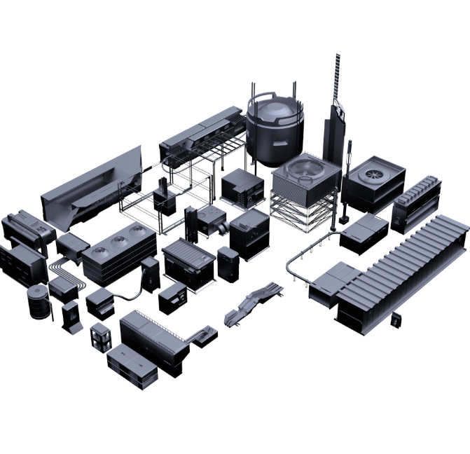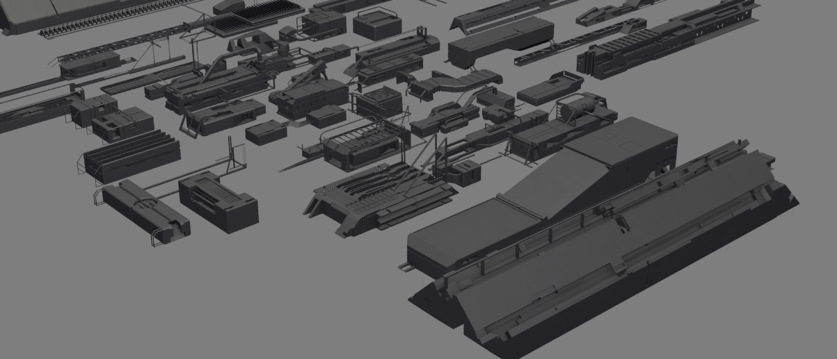 These models were originally produced in a CAD program. They do not have any textures nor UV maps. These are mostly suited for 3D concept. These models shine when they are mixed and matched with themselves to build even more complex structures. Play with mirror and symmetry and kitbash them together.