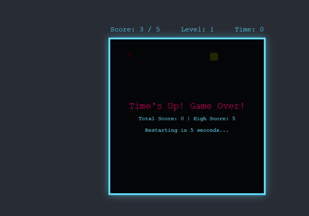 You control the Yellow Player Square with the arrow keys or WASD. Your mission is simple: Grab the Red Collectible Squares before the timer hits zero!